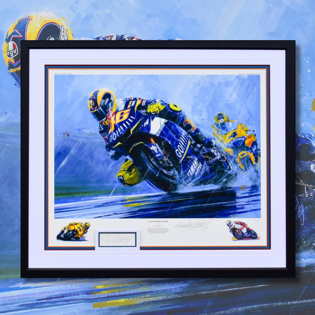 To create a completely unique collector’s piece, our expert team have framed this special copy to include an ORIGINAL and fully-authenticated signature of the World Champion himself, Valentino Rossi!