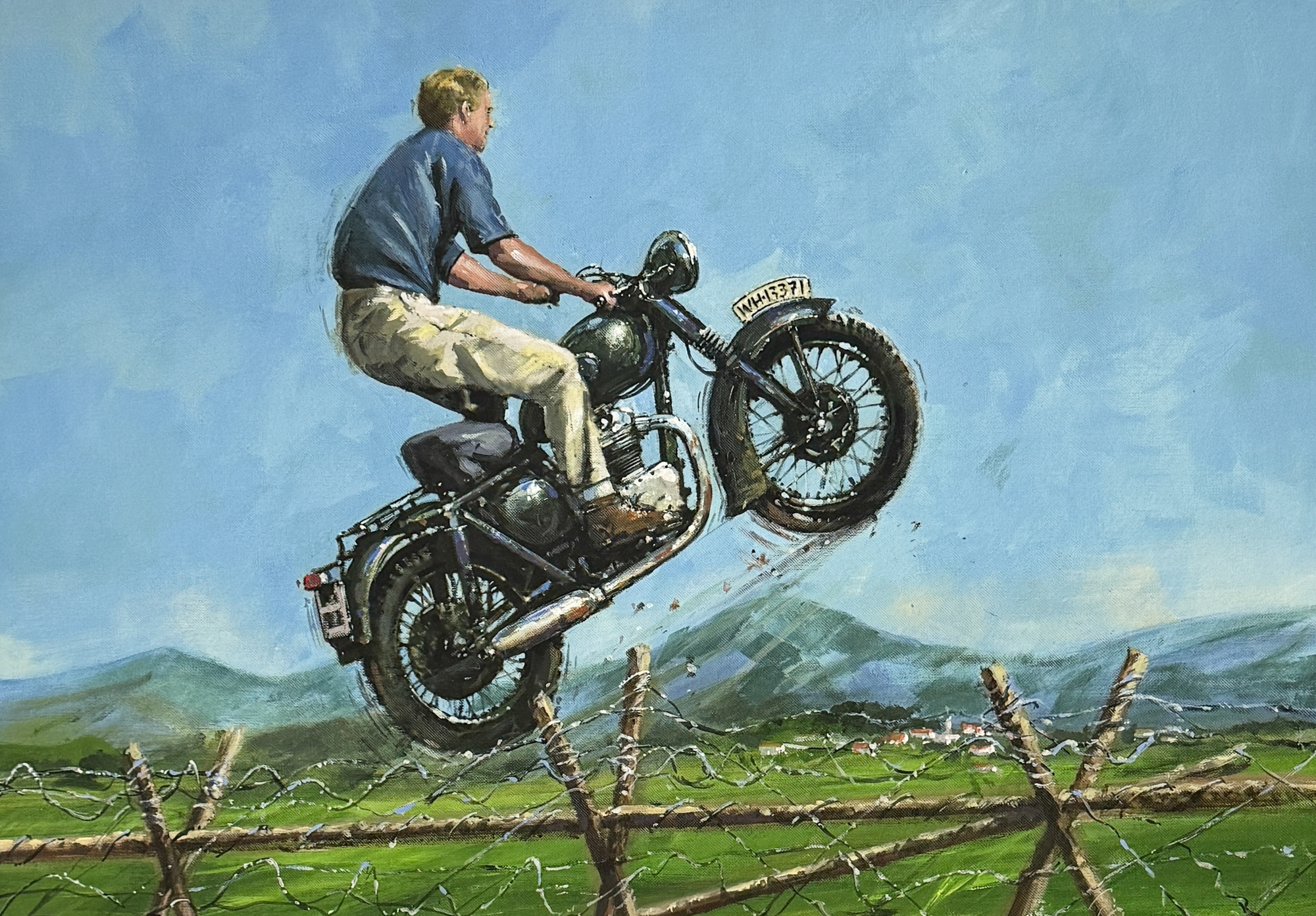 Nick’s famous piece, taken from the 1963 blockbuster shows actor Steve McQueen in full flight!