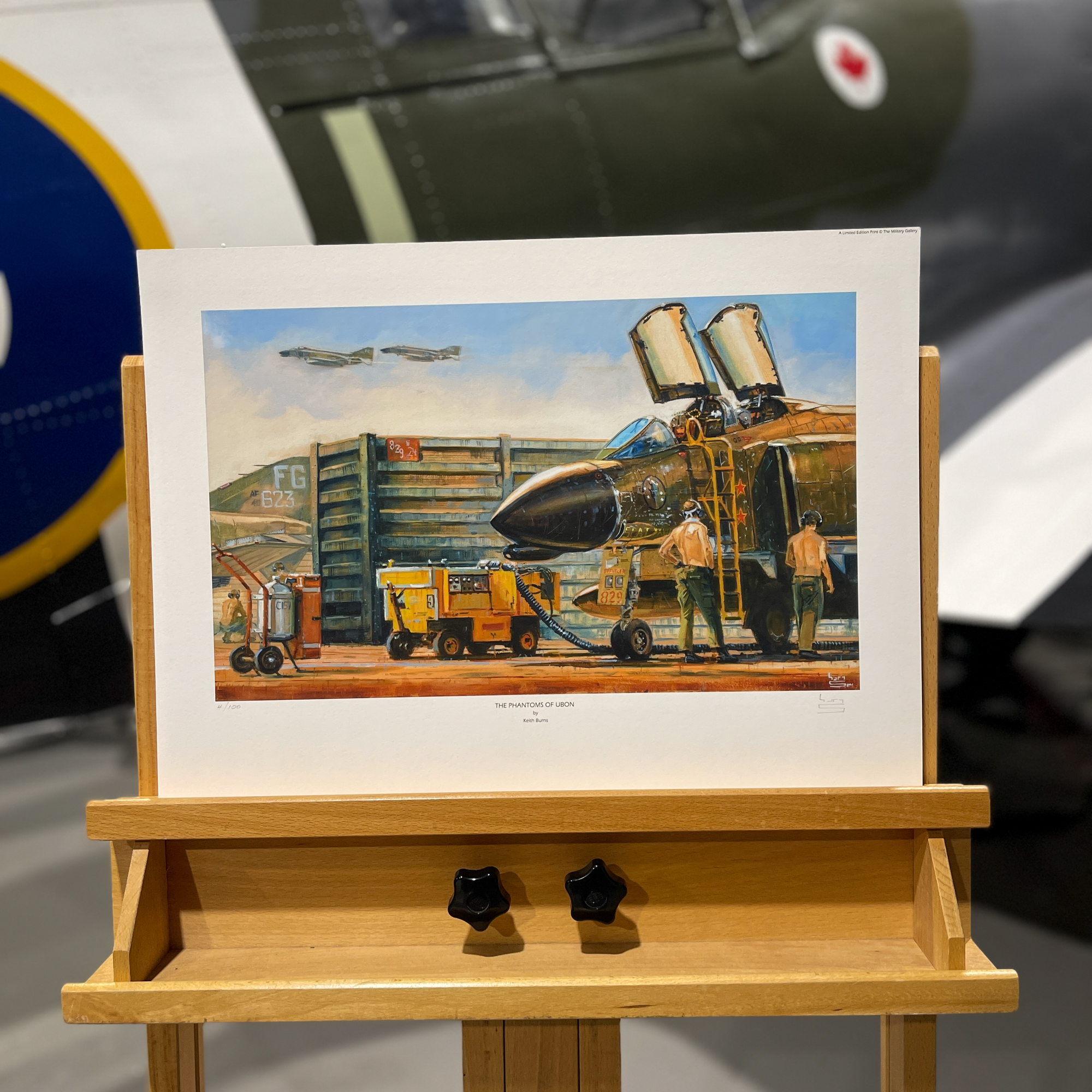 Award winning artist Keith Burns has captured the atmosphere at Ubon during the summer of 1967 perfectly. Carefully researched with the help of veterans who served with Olds in Ubon, Keith’s oil painting depicts his F-4C Phantom ‘Scat XVIII’ of the 433rd Tactical Fighter Squadron in one of Ubon’s secure revetments with his diligent ground crew ready and waiting for his return.