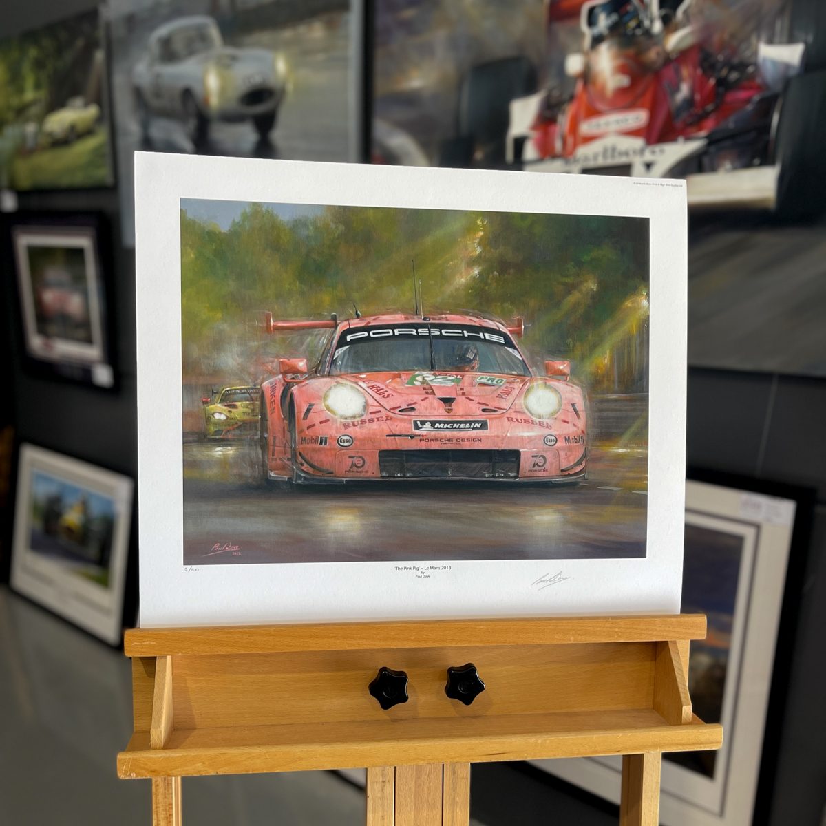 Paul Dove pays a powerful tribute to the #92 Porsche 911 RSR ‘Pink Pig’ driven by Michael Christensen, Kevin Estre, and Laurens Vanthoor, which took the GTE-Pro class win at Le Mans 2018. The #92 car was one of two on the team that adopted iconic Porsche liveries from the past to celebrate the brands 70th Anniversary.